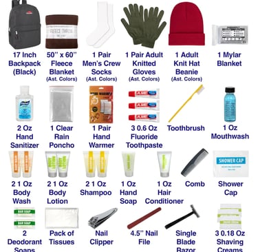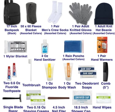 What comes in the $25.00 Homeless Back Pack? 24 Pieces.